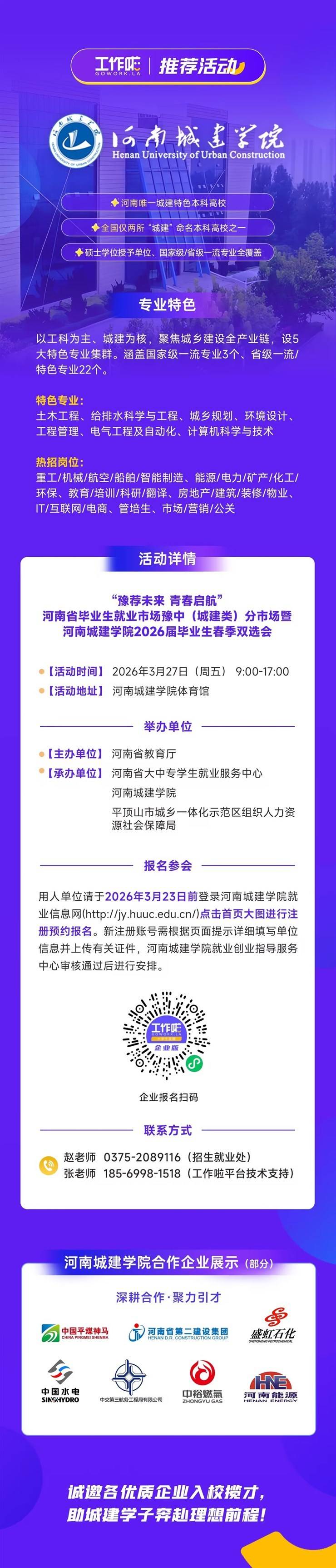 招聘单位:兄弟单位双选会 | 河南城建学院2026届毕业生春季双选会