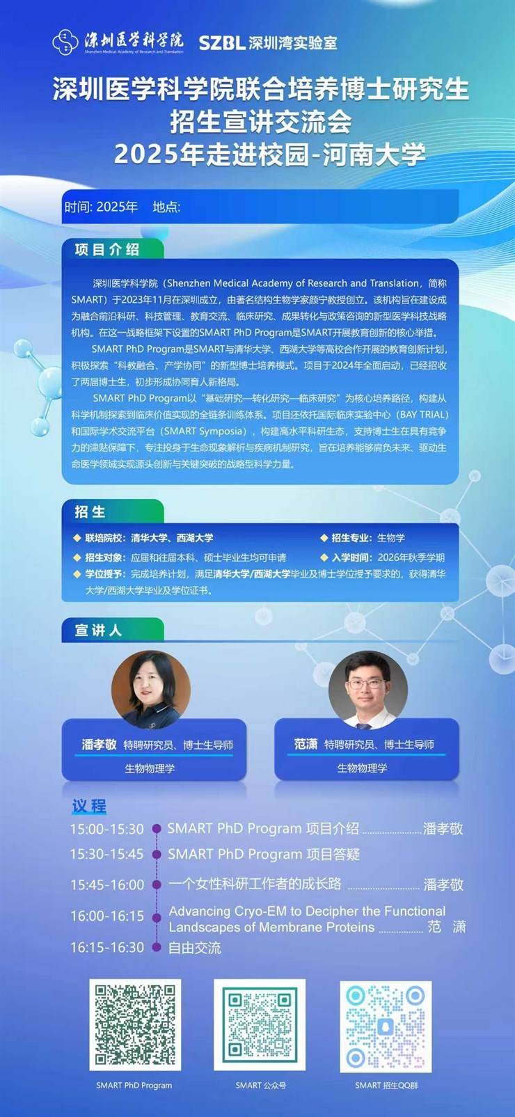 宣讲主题:深圳医学科学院联合培养博士研究生招生宣讲交流会
