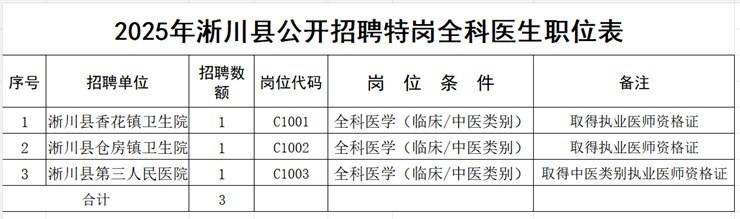 2.2025年淅川县公开招聘特岗全科医生职位表